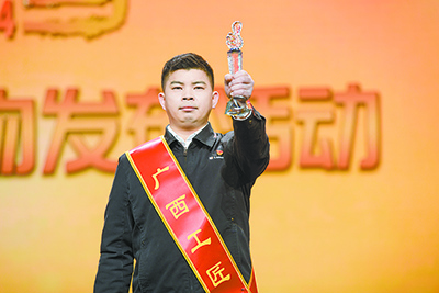 朱飛手持“廣西工匠”獎(jiǎng)杯。