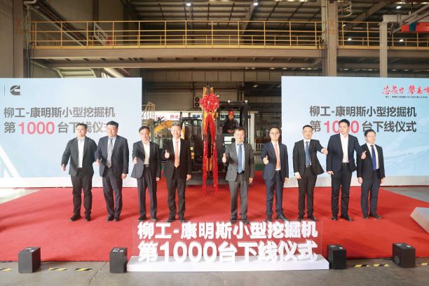 3月19日,第1000臺搭載康明斯E2.8發動機的小型挖掘機下線儀式在柳工東部研發制造基地舉行。
