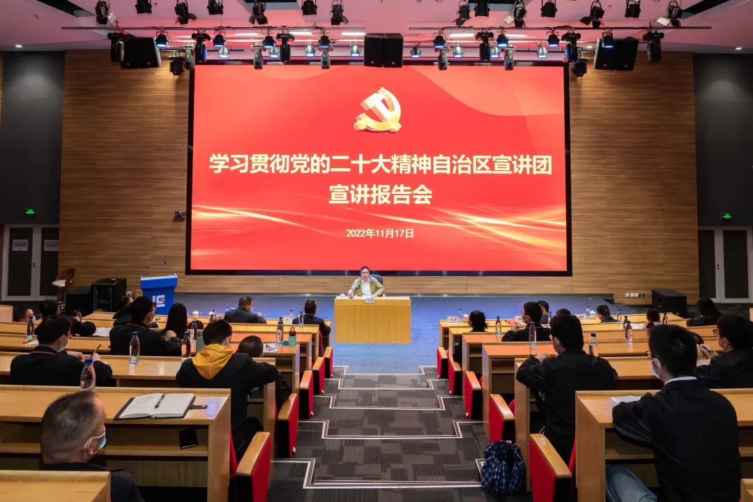 11月17日上午,學習貫徹黨的二十大精神自治區宣講團宣講報告會在柳工全球研發中心召開。自治區宣講團成員,自治區政府發展研究中心黨組書記、主任楊叢為柳工集團黨員干部宣講黨的二十大精神。廣西柳工集團有限公司黨委書記、董事長鄭津主持報告會。