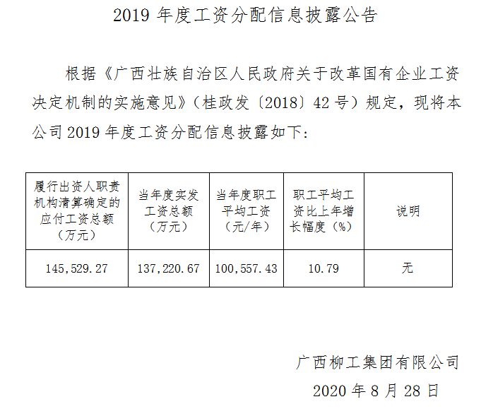 2019年度工資分配信息披露公告