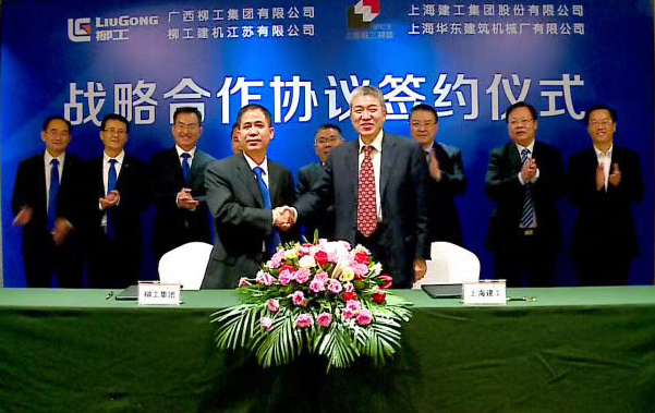 11月25日,柳工集團與上海建工集團《戰略合作框架協議》以及柳工建機與上海華建公司《戰略合作框架協議》簽約儀式在柳州舉行。柳工集團副總裁李于寧、上海建工集團副總裁湯偉以及柳工建機總經理熊華、上海華建公司總經理胡為平分別代表己方簽署了協議,柳工集團董事長曾光安、總裁鄭津等出席見證了簽約儀式。