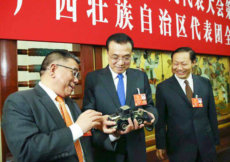 3月6日上午,李克強參加他所在的第十三屆全國人大一次會議廣西代表團的分組討論,共同審議政府工作報告。廣西團各位代表就經濟社會發(fā)展、對外開放、裝備制造升級、支持鄉(xiāng)村振興等問題先后發(fā)言,代表們還向李克強展示了扶貧進展、企業(yè)創(chuàng)新的照片和工程機械產品模型。李克強指出,要鞏固發(fā)展向好勢頭,必須繼續(xù)依靠改革開放創(chuàng)新。廣西作為西部地區(qū)中唯一的沿海省份,區(qū)位優(yōu)勢明顯,發(fā)展?jié)摿薮蟆R獔远ú灰茢U大對外開放,深度融入“一帶一路”建設,深入實施創(chuàng)新驅動發(fā)展戰(zhàn)略,結合推進“互聯(lián)網+”和“中國制造2025”,提升創(chuàng)新創(chuàng)業(yè)水平和質量,大力弘揚工匠精神,推動建設制造強國,努力在搶占未來競爭制高點中贏得優(yōu)勢。
