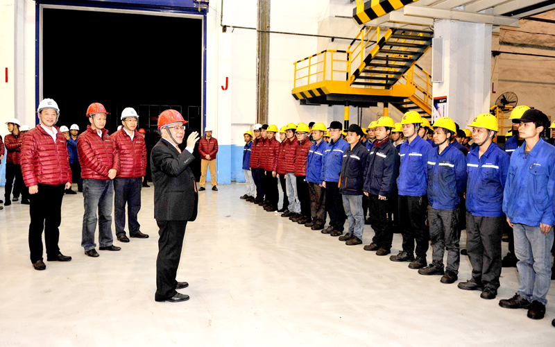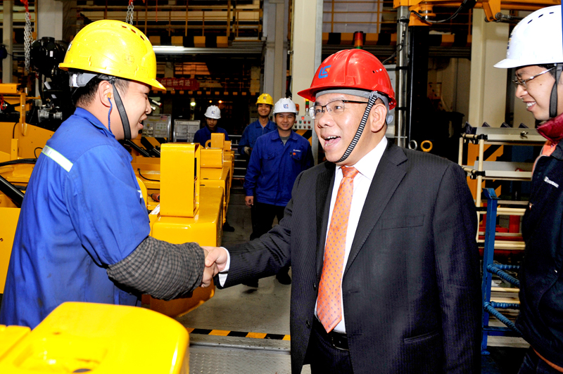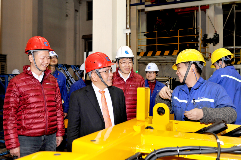 在剛下線的CLG8128H大型裝載機(jī)一側(cè),曾光安與列隊(duì)?wèi)c祝勝利的裝配線員工一一握手,他感謝大家為勝利奪取“1899戰(zhàn)役”付出的辛勤工作。曾光安在講話中高度贊揚(yáng)柳工人是英勇頑強(qiáng)、堅(jiān)不可摧的鋼鐵戰(zhàn)士。他說,“1899戰(zhàn)役”只是個熱身,2018年我們會迎來更大的挑戰(zhàn)。他對裝載機(jī)公司全體員工提出了五個方面的要求:一是打好新年開門紅的新戰(zhàn)役,為2018年挑戰(zhàn)更高產(chǎn)量目標(biāo)做好充分的準(zhǔn)備。二是努力提升工作效率和降生產(chǎn)運(yùn)營管理成本。他說,裝載機(jī)的盈利水平還有很大空間,成本控制是公司的重要工作之一。三是抓好產(chǎn)品質(zhì)量這根主線,2018年我們的產(chǎn)品質(zhì)量在現(xiàn)有基礎(chǔ)上要有更大的改善和提升。四是嚴(yán)把產(chǎn)品交貨期。要吸取2017年因進(jìn)口件及供方配套件不及時帶來的訂單流失的教訓(xùn),在保證產(chǎn)品質(zhì)量的同時,嚴(yán)格按客戶指定的時間交貨,真正體現(xiàn)柳工是一家高質(zhì)量、高水平、高誠信的制造企業(yè)。五是努力打造一支懂管理、懂技術(shù)的年輕管理者人才隊(duì)伍,同時要重點(diǎn)培養(yǎng)生產(chǎn)一線員工中的大師級人才隊(duì)伍,讓年輕的新生力量成為有想法、有闖勁、勇?lián)?dāng)?shù)募夹g(shù)型工人隊(duì)伍。