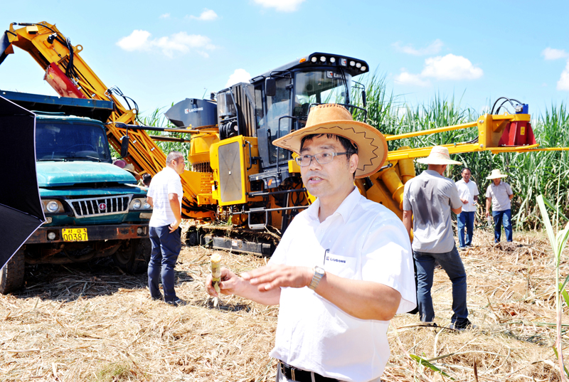 9月27日,距離甘蔗收獲期還有一個(gè)多月,來賓市廖平農(nóng)場的甘蔗田里卻忙開了,由來賓市農(nóng)業(yè)機(jī)械化管理局和柳工農(nóng)機(jī)公司共同舉辦的甘蔗生產(chǎn)全程機(jī)械化現(xiàn)場演示會(huì)正在熱鬧的進(jìn)行著。太陽被人聲鼎沸的場面吸引,過來湊熱鬧,展示會(huì)場面熱度、甘蔗田地表溫度節(jié)節(jié)攀升。集團(tuán)公司副總裁黃祥全(如下圖),自治區(qū)、柳州市、來賓市、行業(yè)等相關(guān)部門領(lǐng)導(dǎo),各大糖業(yè)集團(tuán)、農(nóng)業(yè)公司、合作社的代表,以及許多甘蔗種植大戶等近500名嘉賓到現(xiàn)場,在炙熱的陽光下,瞇縫著眼、呲著牙、伸長脖子,往甘蔗田里張望。