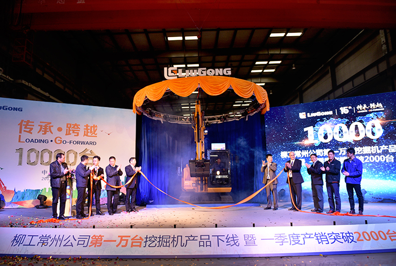 3月31日,柳工常州公司第10000臺(tái)挖掘機(jī)產(chǎn)品下線暨一季度產(chǎn)銷突破2000臺(tái)活動(dòng)在常州舉行(如下圖)。