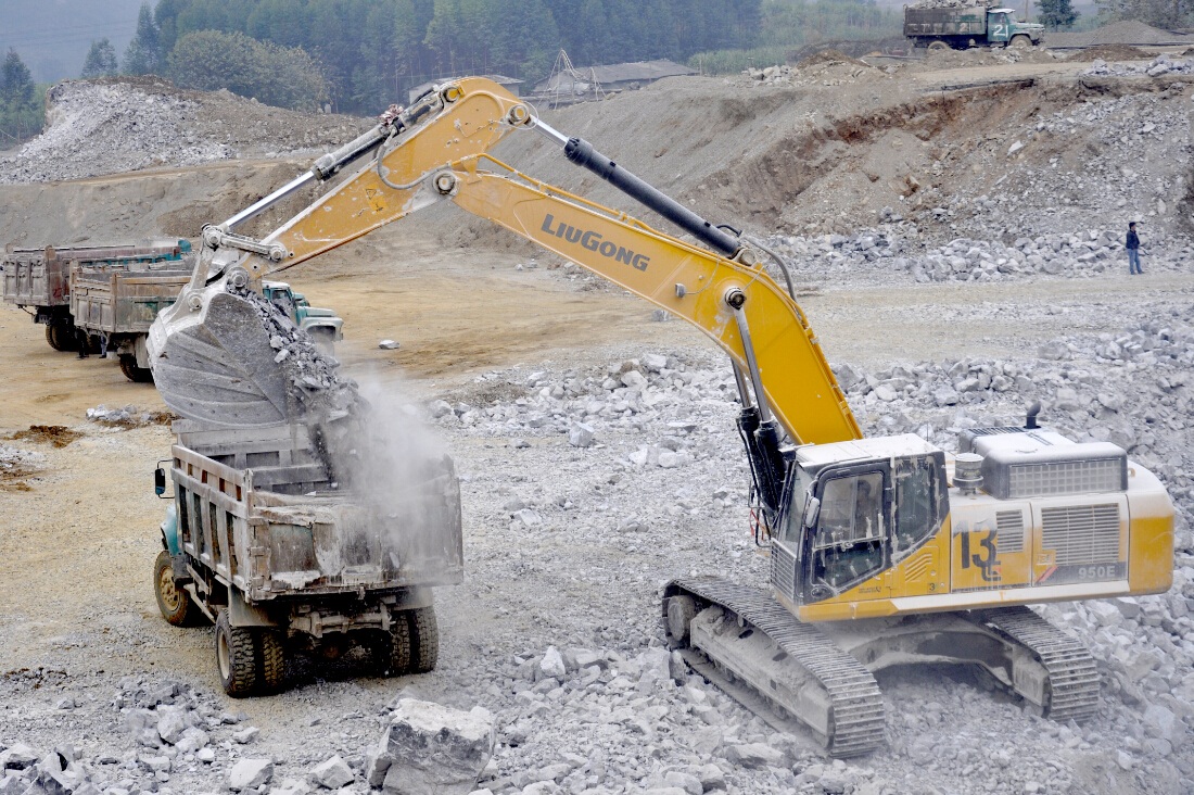 “我們?nèi)齻€(gè)采石場共有16臺挖掘機(jī),以前都用的是進(jìn)口品牌,價(jià)格高不說,而且服務(wù)還不及時(shí),配件要等很久才能到位,一旦出現(xiàn)故障,對于我們生產(chǎn)影響太大。”何先生介紹,像他們采石場這樣的工況,挖掘機(jī)容易出故障,而且出的故障越來越多,服務(wù)不及時(shí)的話,只能更換產(chǎn)品,資金投入太大。“我們使用柳工CLG950E挖掘機(jī)大半年了(如下圖),柳工挖掘機(jī)表現(xiàn)讓我們眼前一亮,沒出過什么問題,作業(yè)效率也完全能夠滿足我們的要求。”何先生說,他們真沒想到,柳工挖掘機(jī)技術(shù)水平已經(jīng)這么高了,今后他們會(huì)將挖掘機(jī)逐步換成柳工品牌。